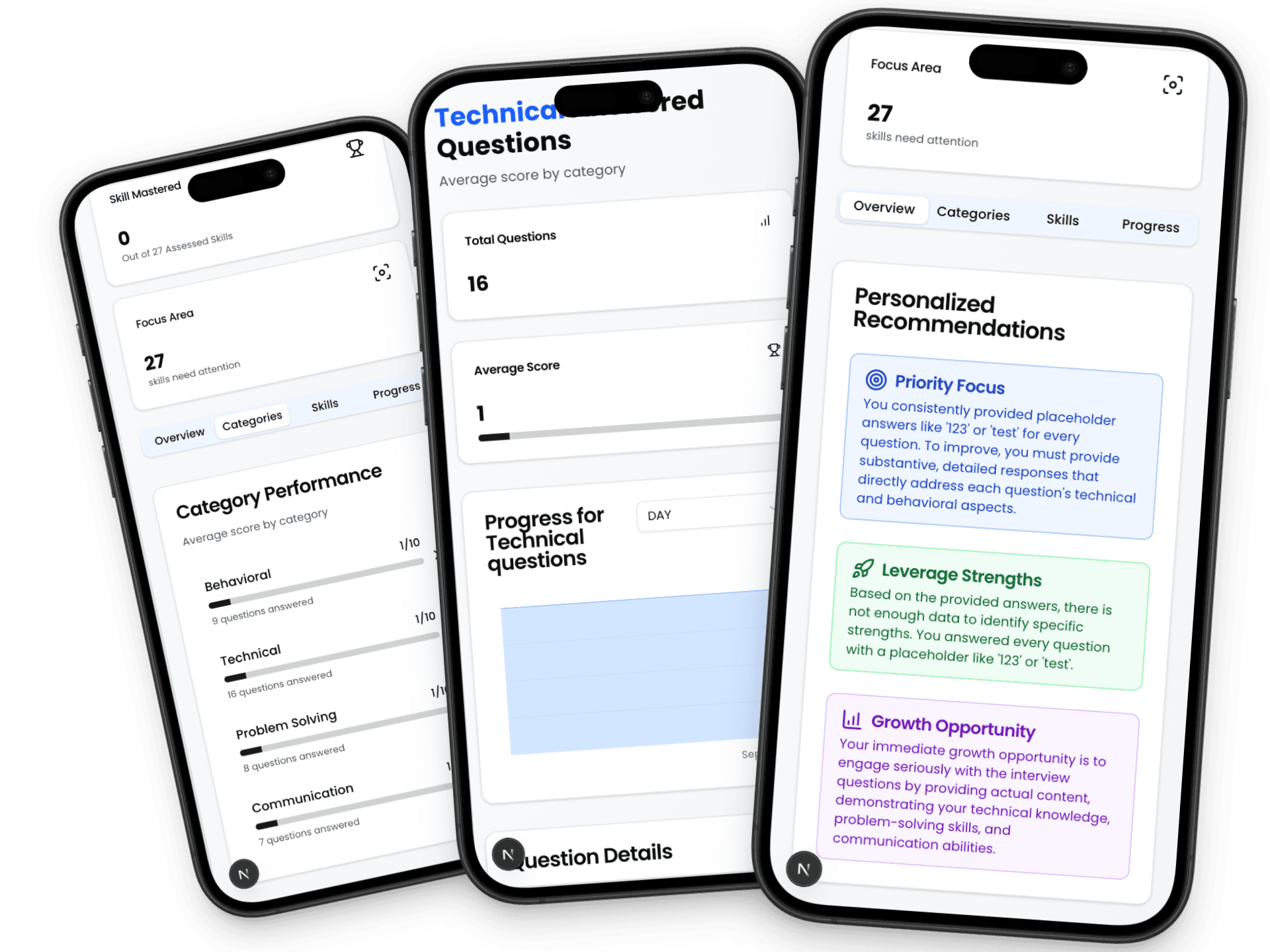 Get in-depth analysis of your responses with specific suggestions for improvement areas and strengths to leverage
