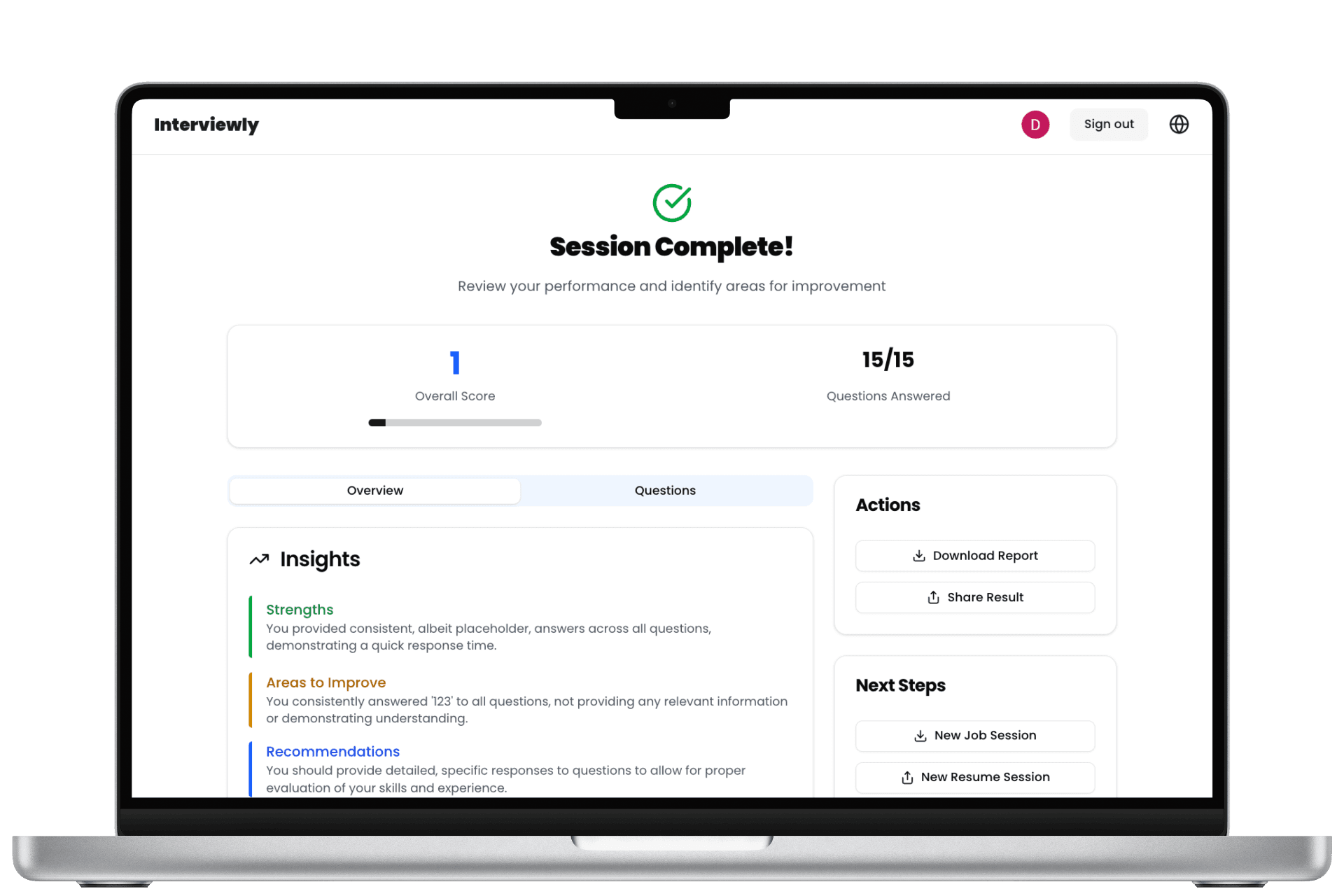 Get in-depth analysis of your responses with specific suggestions for improvement areas and strengths to leverage